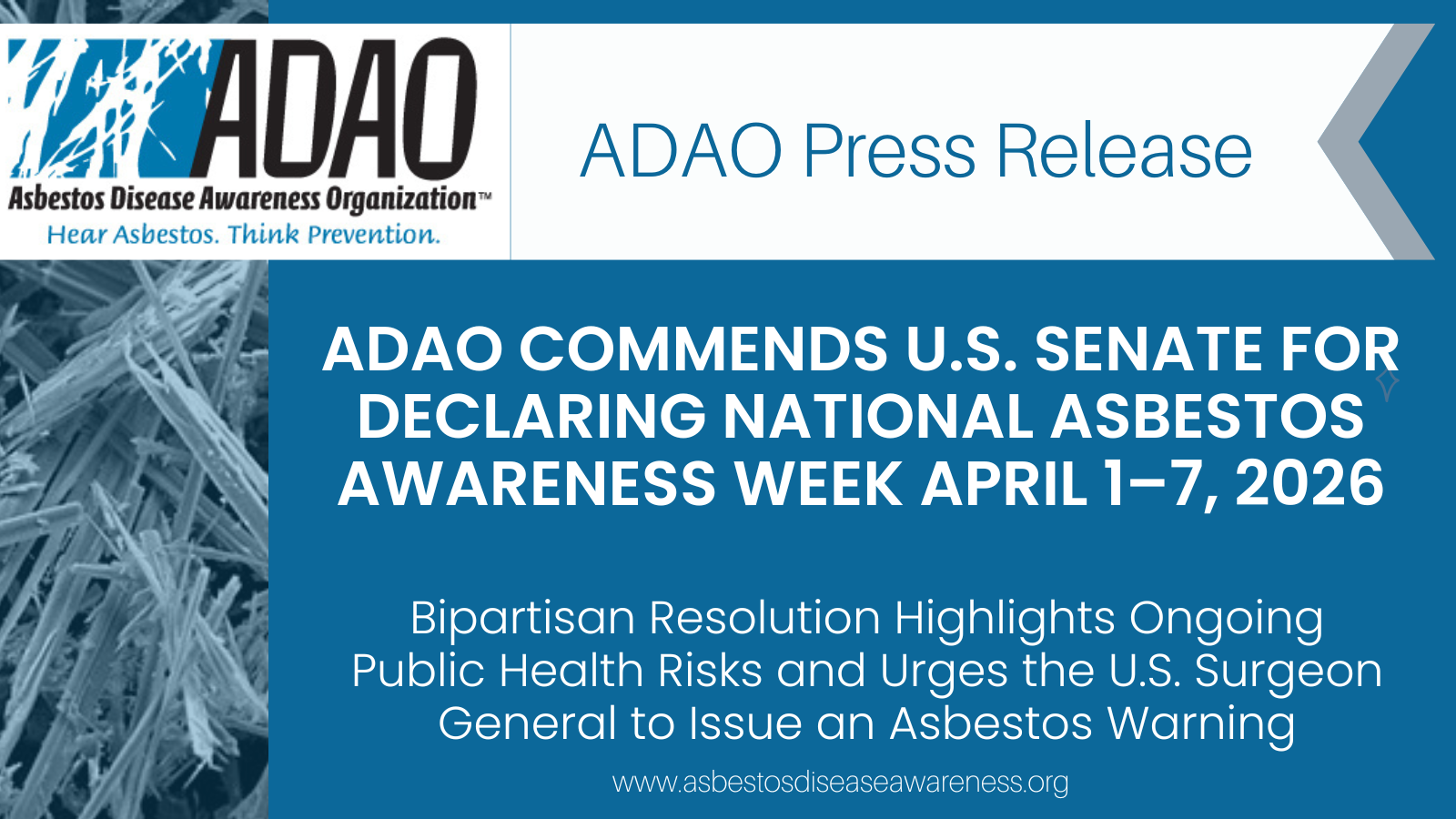 PRESS RELEASE: ADAO Commends U.S. Senate For Declaring National Asbestos Awareness Week April 1–7, 2026