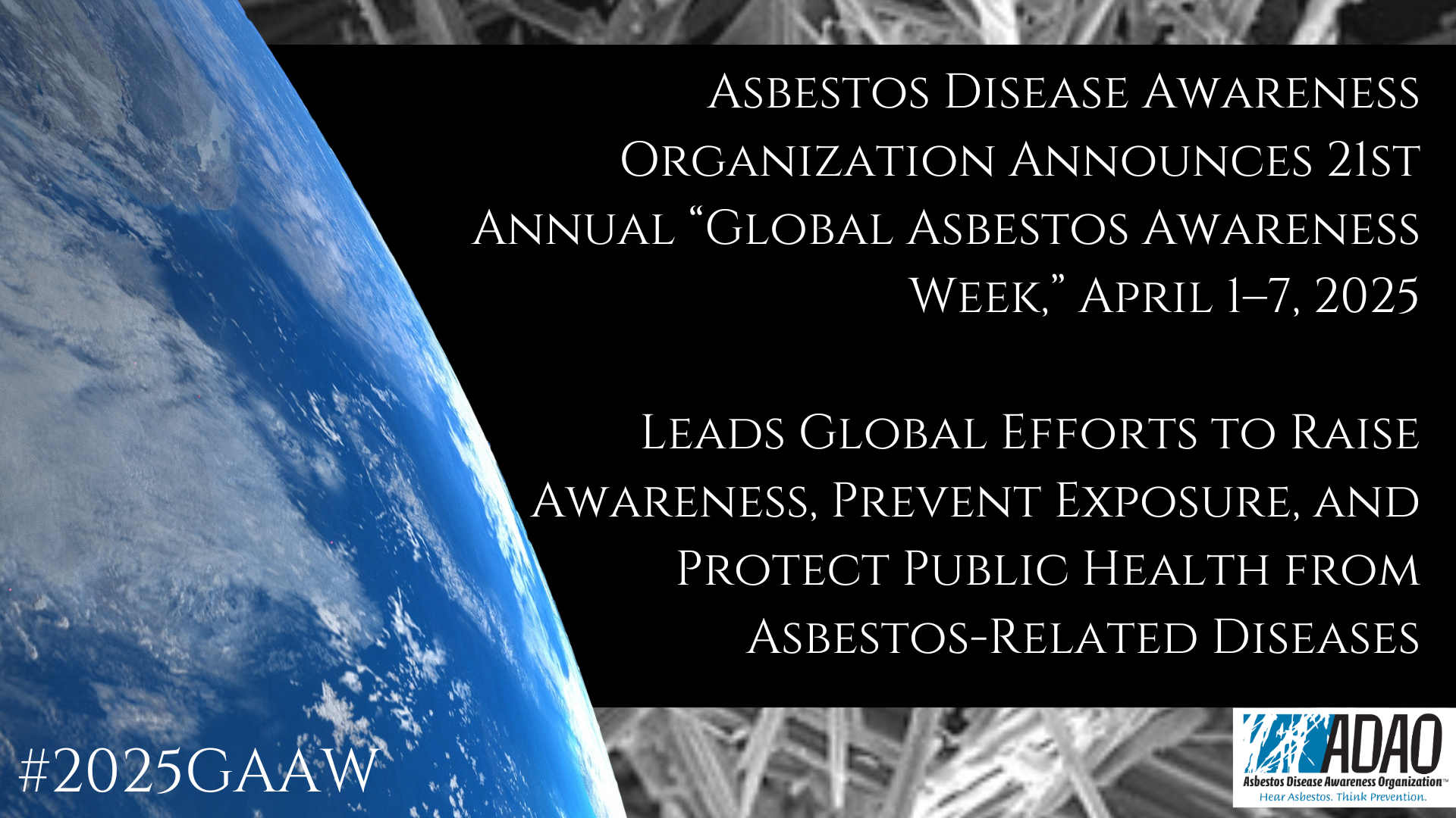 Asbestos Disease Awareness Organization Announces 21st Annual “Global Asbestos Awareness Week,” April 1–7, 2025