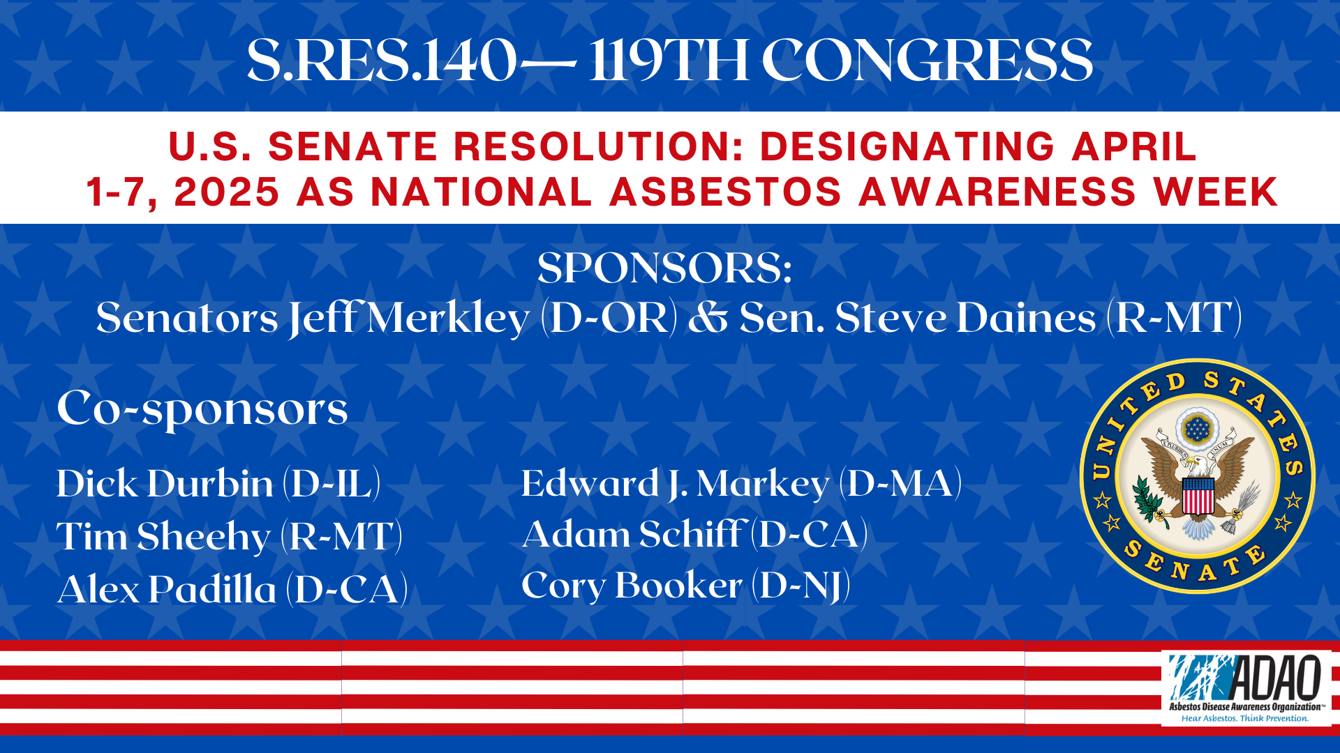ADAO APPLAUDS THE U.S. SENATE FOR UNANIMOUSLY PASSING THE 20TH RESOLUTION DESIGNATING APRIL 1-7 AS “NATIONAL ASBESTOS AWARENESS WEEK”