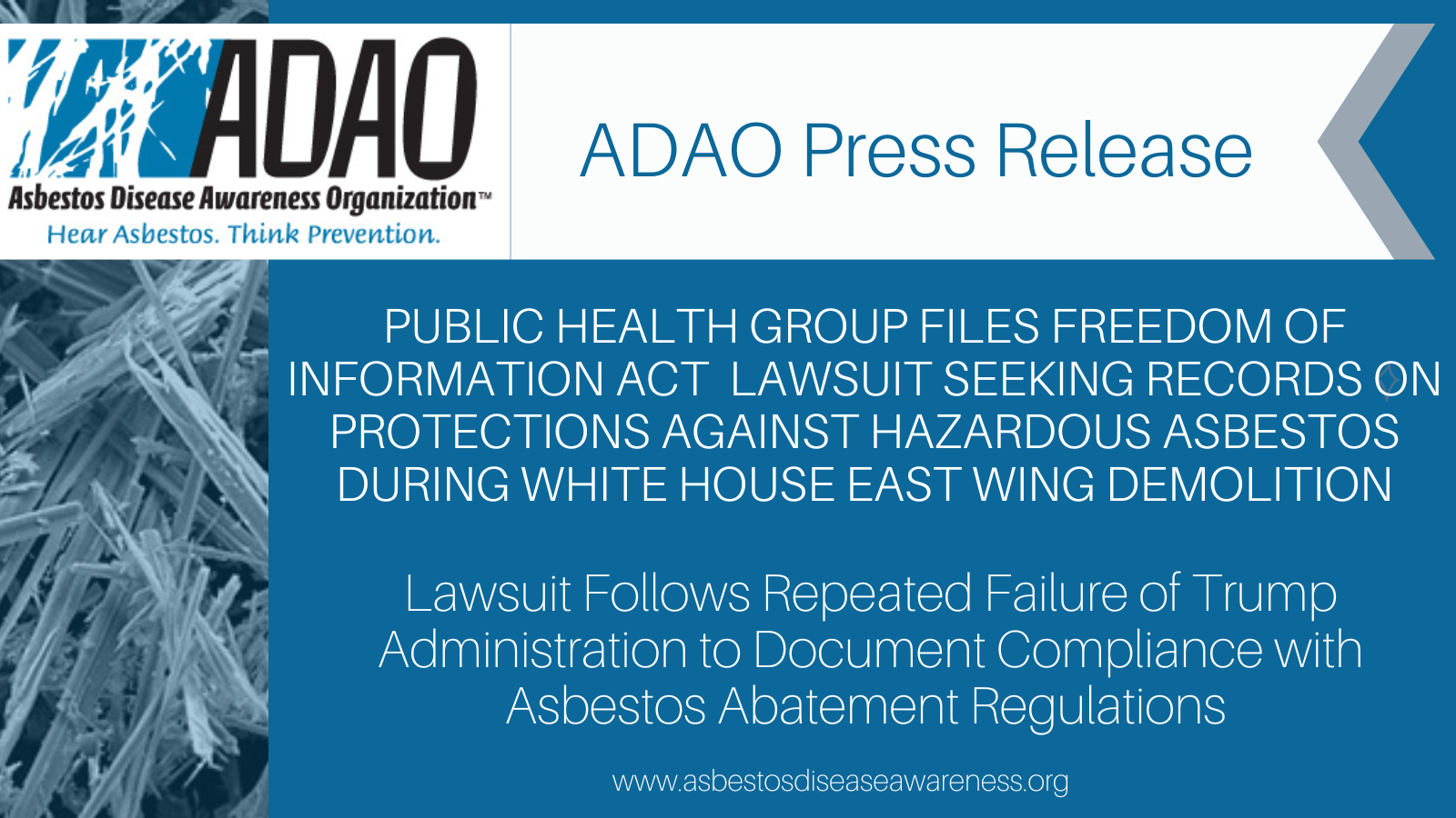 PUBLIC HEALTH GROUP FILES FREEDOM OF INFORMATION ACT LAWSUIT SEEKING RECORDS ON PROTECTIONS AGAINST HAZARDOUS ASBESTOS DURING WHITE HOUSE EAST WING DEMOLITION