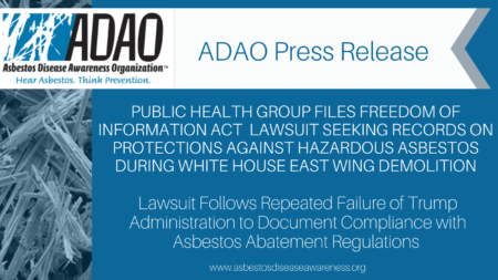 ADAO’s detailed complaint follows two months of unanswered requests for records that would demonstrate whether legally required asbestos inspections, abatement procedures, worker protections, air monitoring, and waste disposal safeguards were implemented and documented before and during demolition of the East Wing, an older structure likely to contain asbestos.