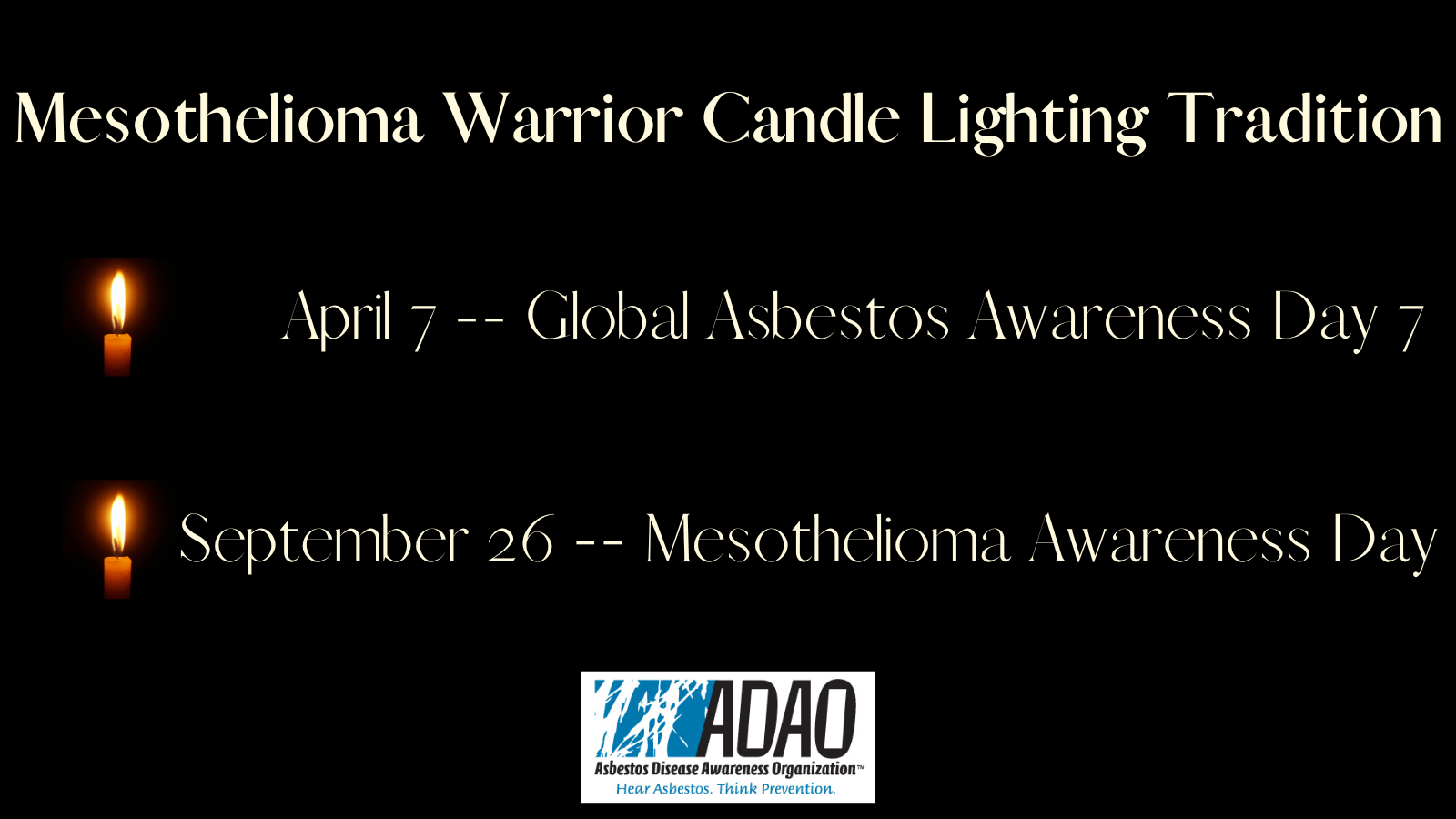 For more over two decades, our shared Candle Lighting Tradition has honored Mesothelioma Warriors and their families. In 2025, we will hold two remembrance ceremonies — April 7, the final day of Global Asbestos Awareness Week, and September 26, Mesothelioma Awareness Day.