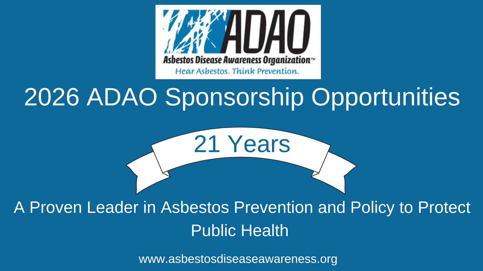 There are three levels of sponsorship, and ADAO utilizes the most current, cost-effective means to broaden our reach and deepen our impact. The 2026 Sponsors can leverage ADAO’s social media and digital expertise for collaborative marketing efforts and cultivate relationships with ADAO’s network of asbestos victims, experts, and concerned citizens. Sponsors benefit from official recognition via several avenues, such as: