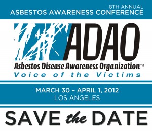 Redondo Beach, CA … December 16, 2011— The Asbestos Disease Awareness Organization (ADAO), which combines education, advocacy, and community initiatives as a leading asbestos victims’ voice worldwide, announced its honorees and keynote speaker for the 8th Annual International Asbestos Awareness Conference, Asbestos: An International Public Health Crisis, to be held March 30–April 1, 2012 in Los Angeles, CA (Conference Registration). The conference brings together renowned experts and asbestos victims in a united forum to enhance asbestos awareness, education, treatment, and collaboration. The conference is made possible with the partnership of the Environmental Information Association (EIA) and Independent Asbestos Training Providers (IATP).