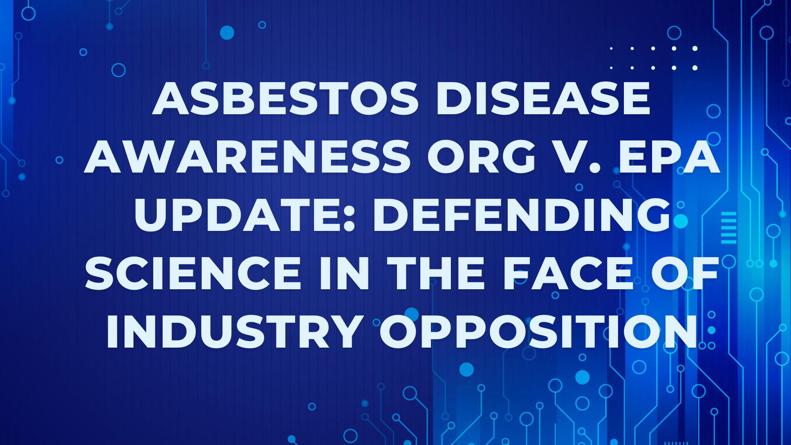 Unlike industry stakeholders seeking to dismantle these protections, ADAO’s mission is clear: to uphold the rule, defend the science behind it, and, where feasible, enhance the EPA’s asbestos regulations to better safeguard public health. We have a strong and scientifically proven case, one that will set important legal precedents and safeguard public health in the future.