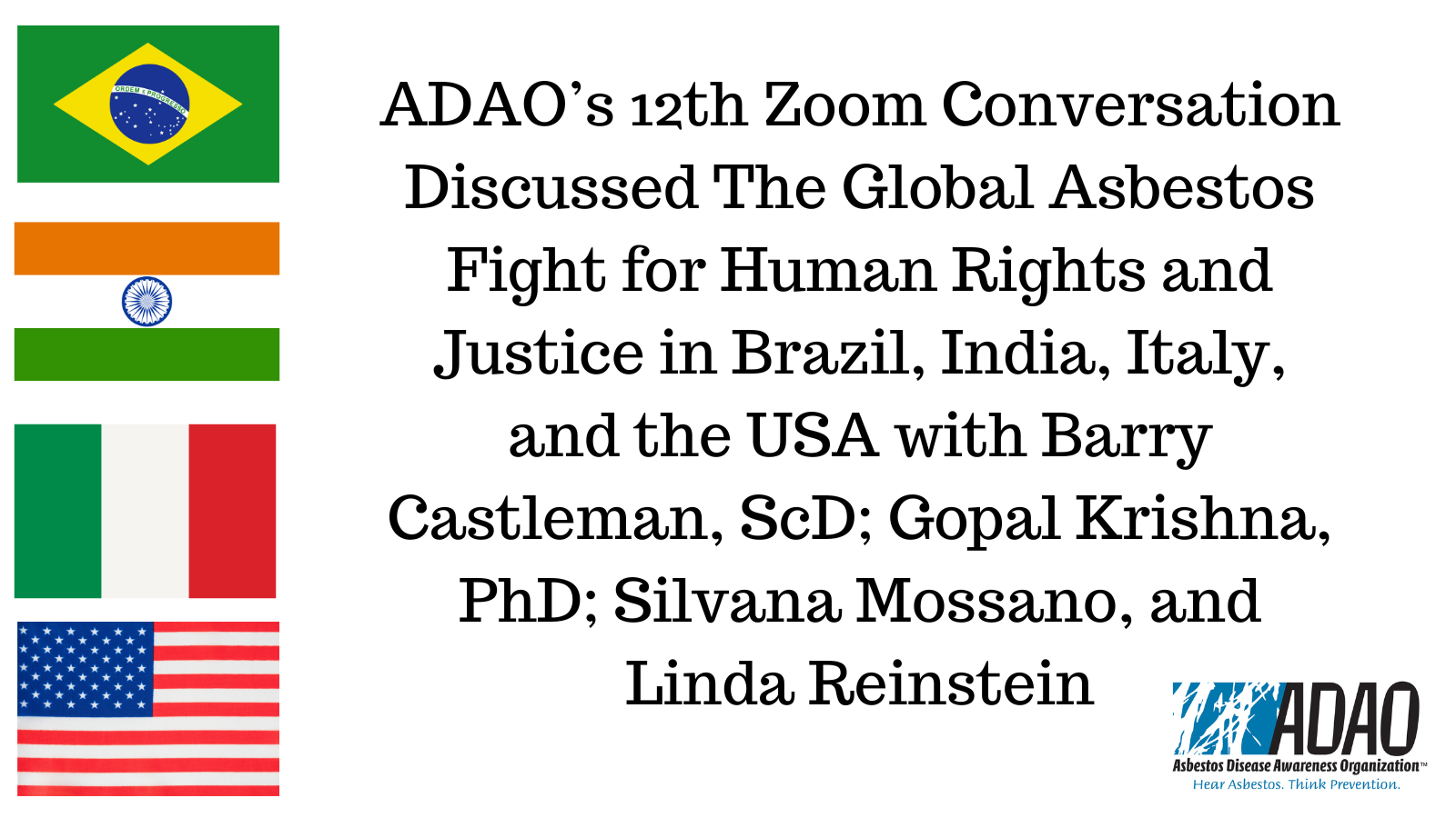 The conversation focused on the extreme human rights violations caused by the manmade disaster of asbestos. As Barry Castleman noted, the hazards of asbestos have been known for decades. The “background of the asbestos industry is that it was largely built on the failure to warn people about the lethality of asbestos,” Barry said. “Clearly a human rights matter that you have companies using every dirty trick in the book to sell asbestos.”