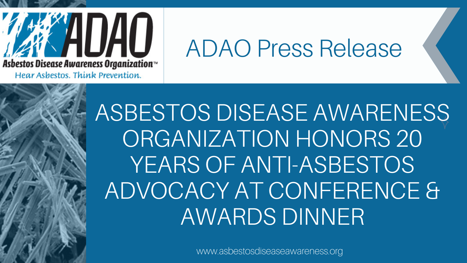 ASBESTOS DISEASE AWARENESS ORGANIZATION HONORS 20 YEARS OF ANTI-ASBESTOS ADVOCACY AT CONFERENCE & AWARDS DINNER
