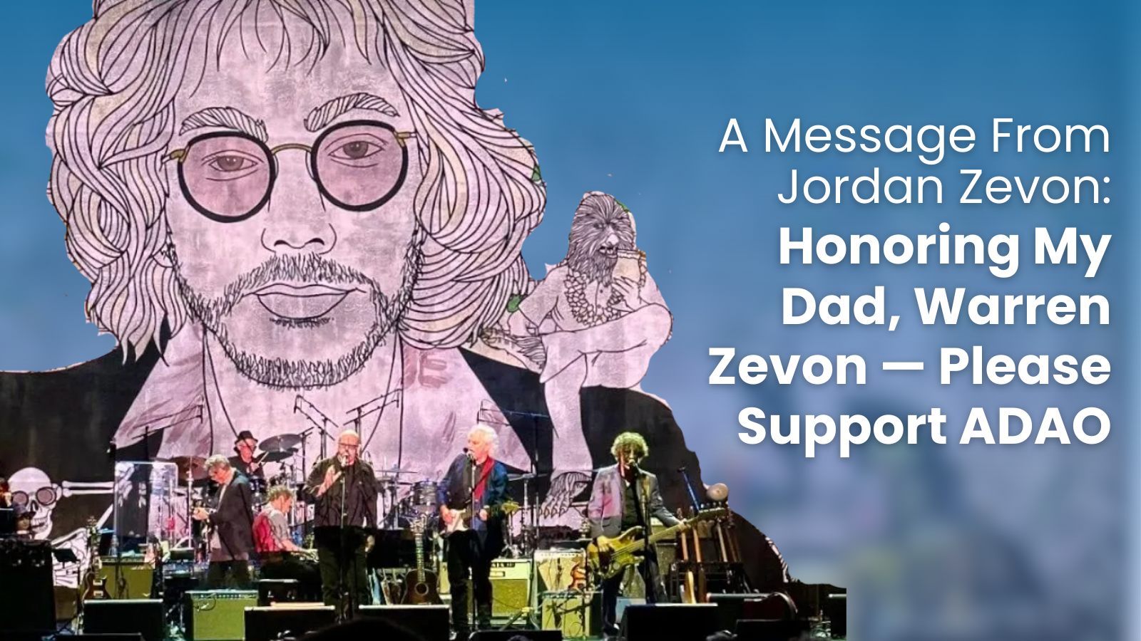 Posted on December 17, 2025 To join me in supporting ADAO, kindly use this link. A Message From Jordan Zevon: Honoring My Dad, Warren Zevon — Please Support ADAO When most people hear the name Warren Zevon, they think of the Grammy-winning singer-songwriter whose fearless lyrics and honesty reshaped rock and roll. This year, his [...]