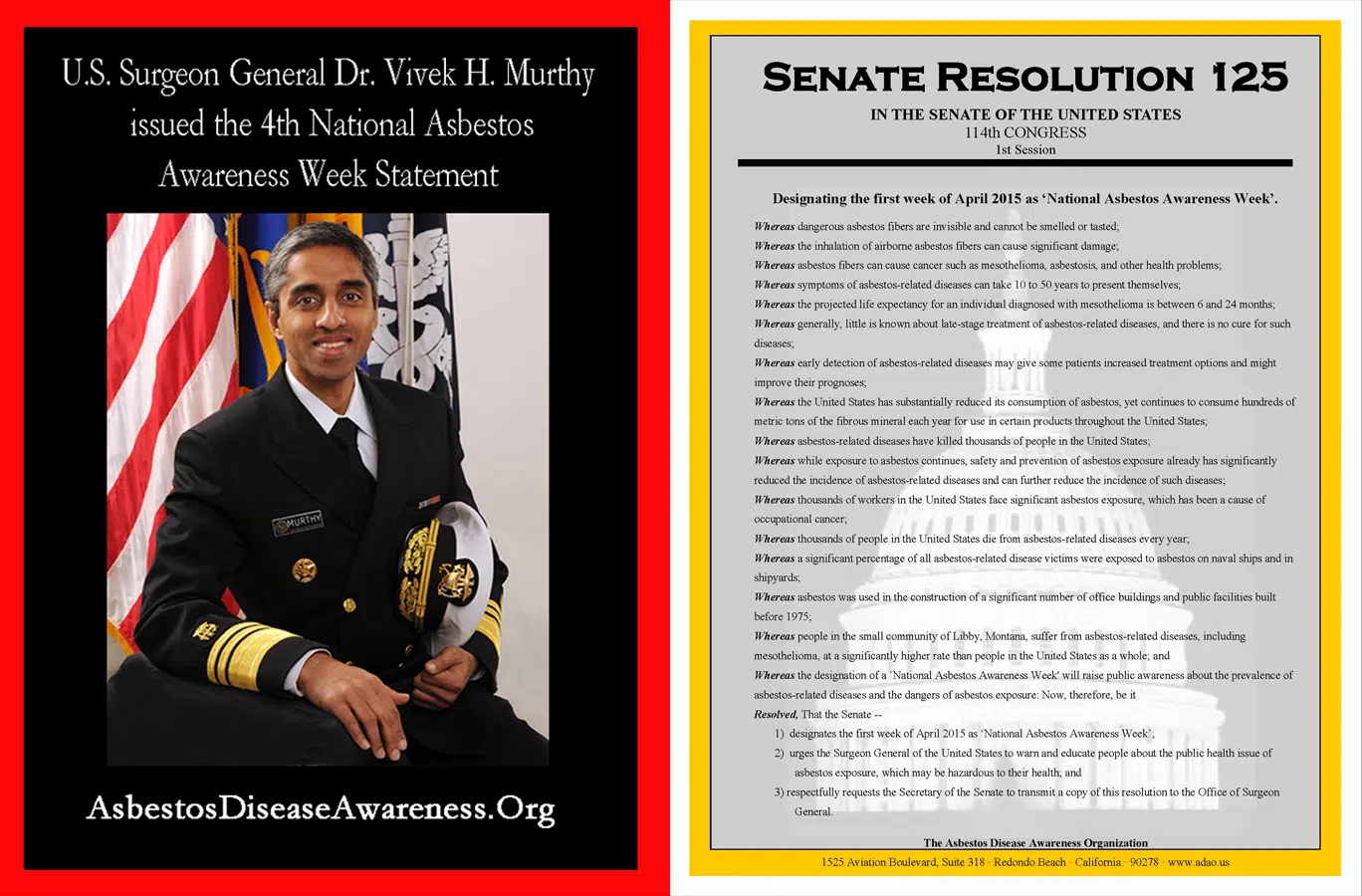 Global Asbestos Awareness Week: April 2 “U.S. Surgeon General Asbestos Awareness Week Statements and the Senate Resolutions”