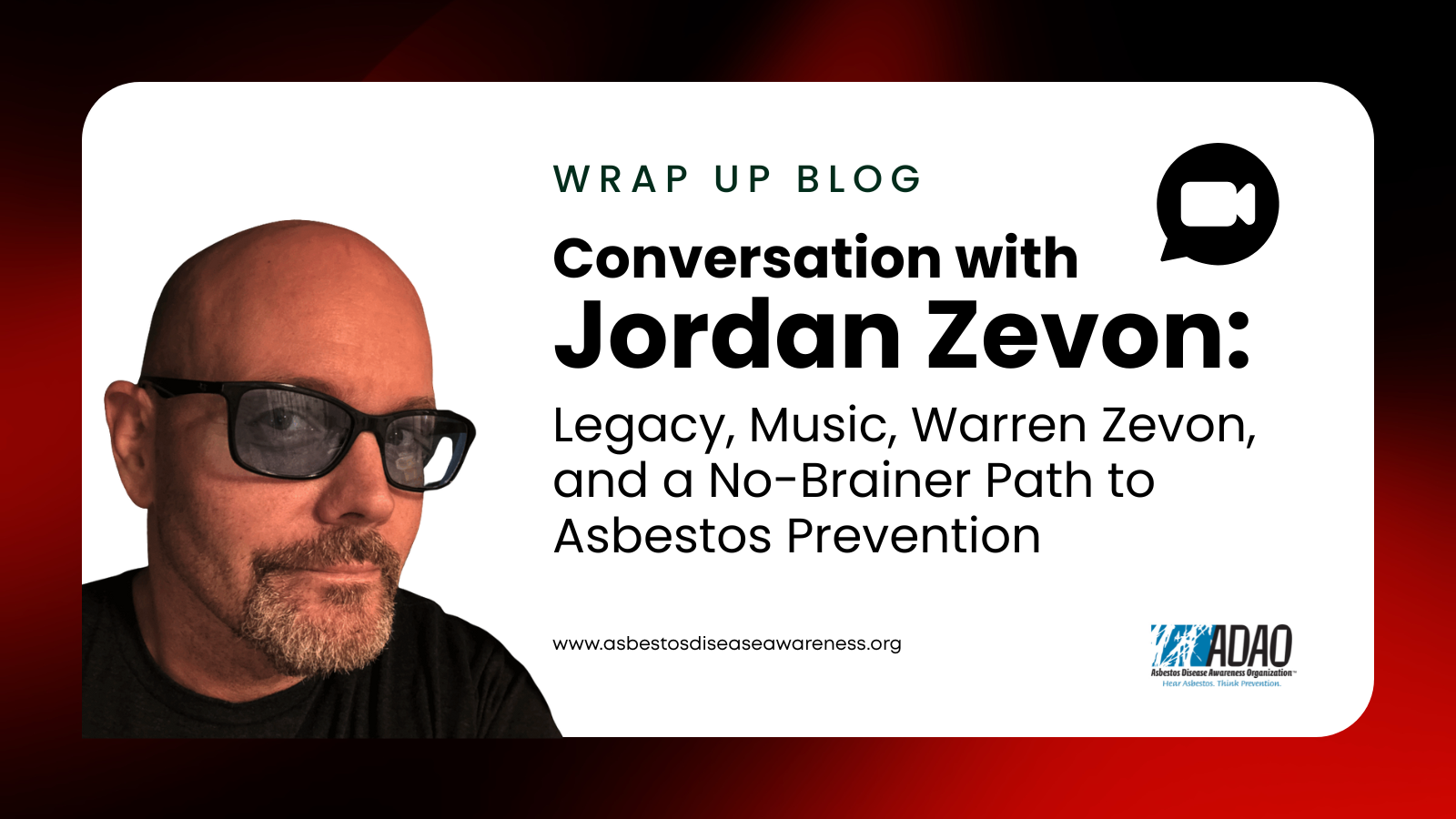 Conversation with Jordan Zevon: Legacy, Music, Warren Zevon, and a No-Brainer Path to Asbestos Prevention Recorded via Zoom on October 20, 2025 — Hosted by ADAO When the Asbestos Disease Awareness Organization gathered online for a special conversation with Jordan Zevon, the tone was intimate, reflective, and unmistakably real. For twenty years, Jordan has stood [...]