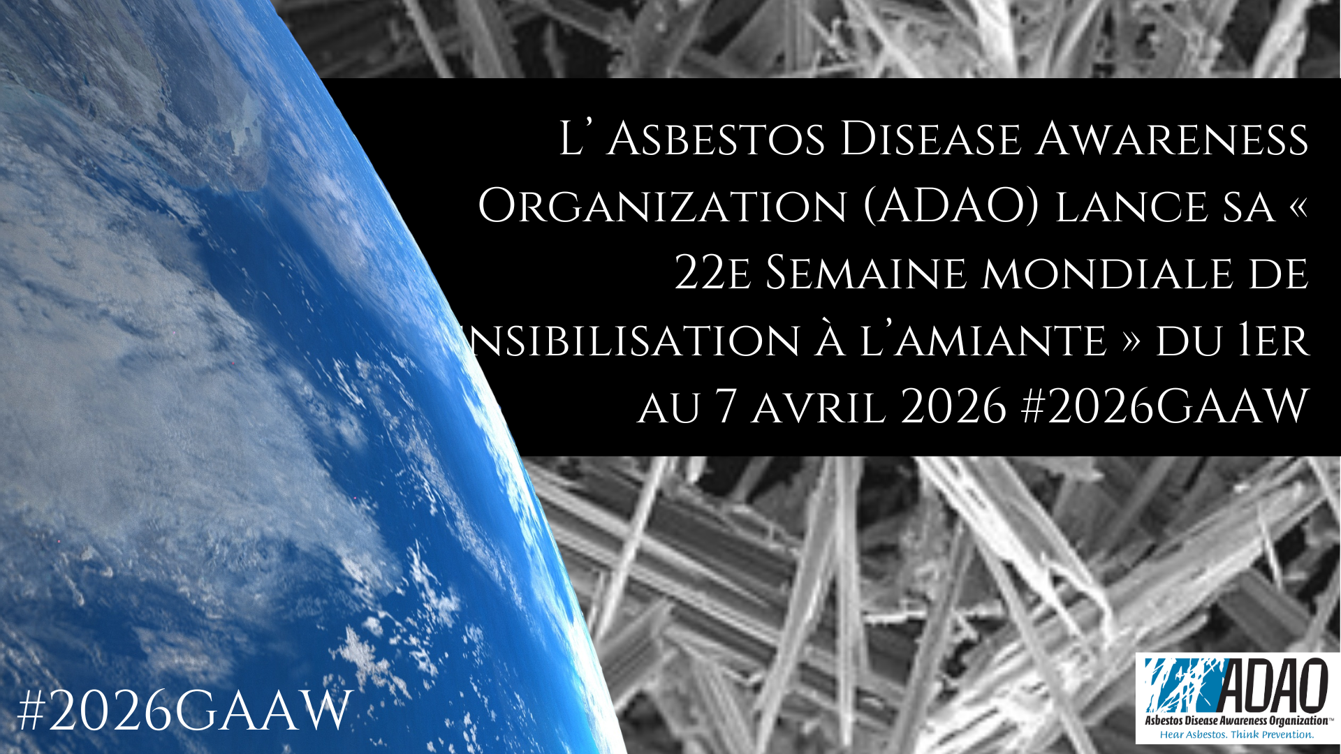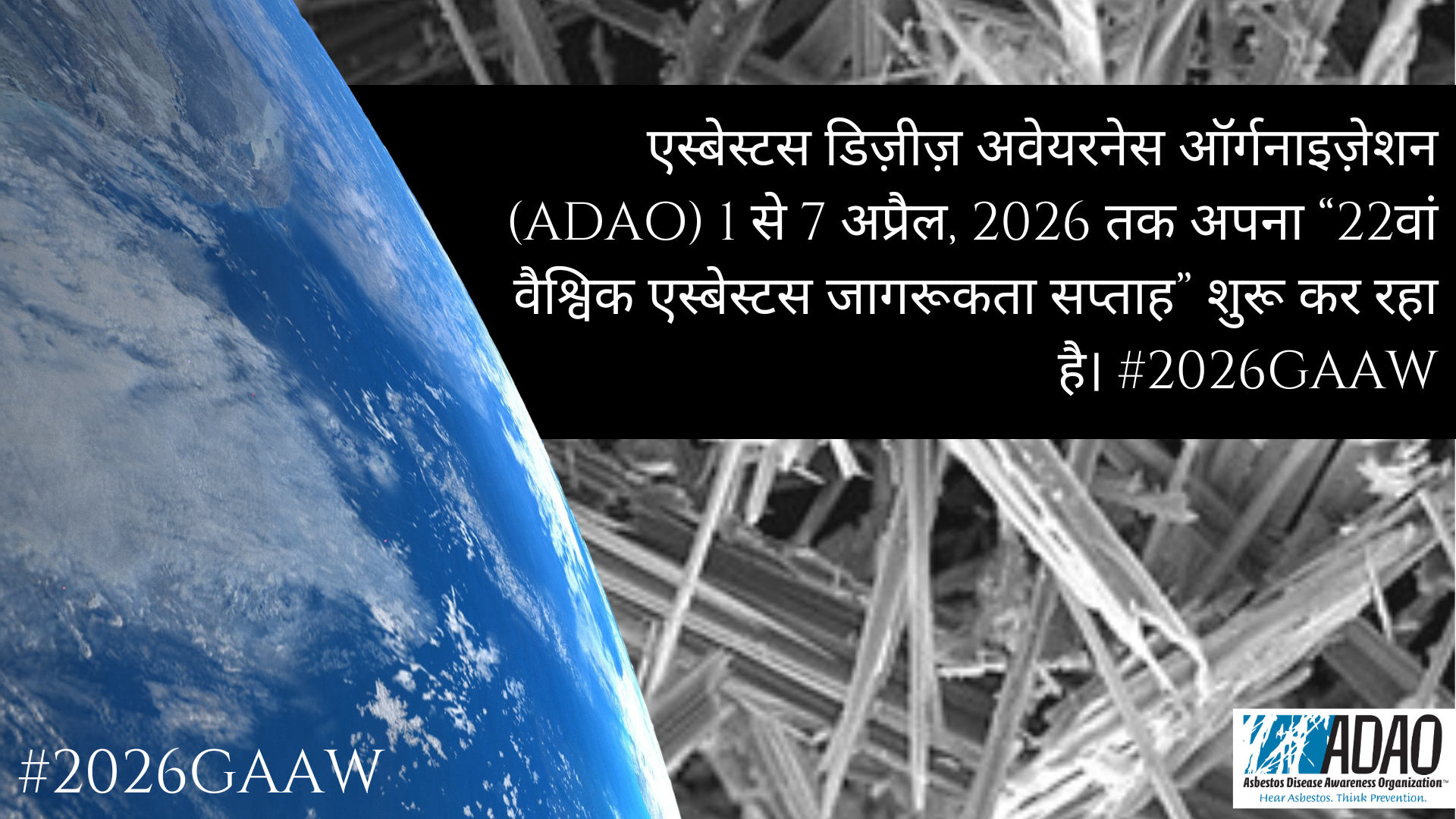 एस्बेस्टस डिज़ीज़ अवेयरनेस ऑर्गनाइज़ेशन (ADAO) 1 से 7 अप्रैल, 2026 तक अपना “22वां वैश्विक एस्बेस्टस जागरूकता सप्ताह” शुरू कर रहा है। #2026GAAW