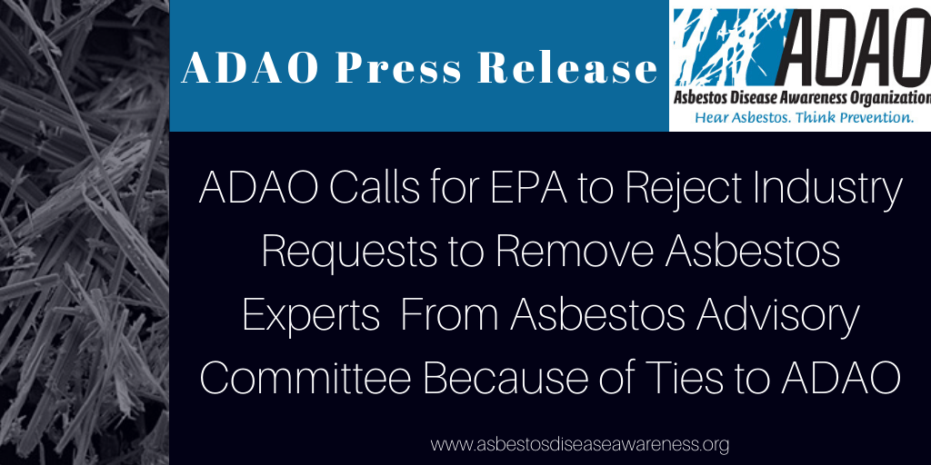 Press Release: EPA Violated TSCA by Refusing to Require Industry to Report on Importation and Use of Asbestos || ADAO and Five Leading Organizations Take Strong Position in Federal Court