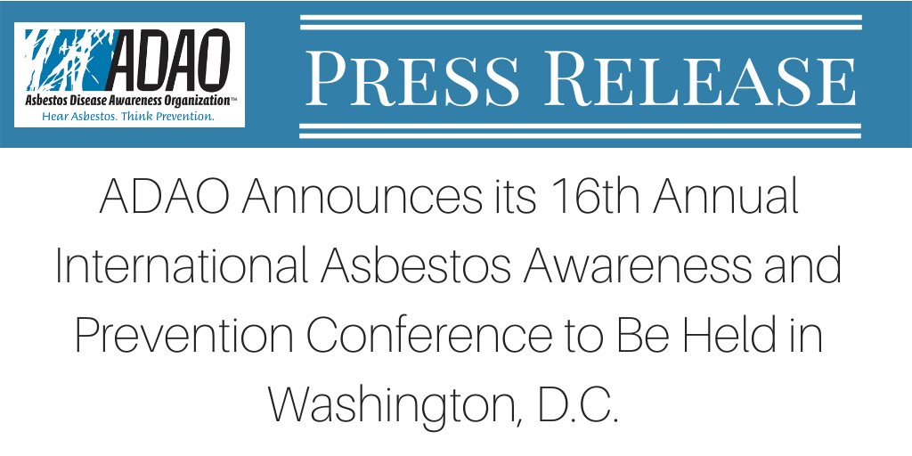 Asbestos Disease Awareness Organization (ADAO) Announces Honorees and Keynote Speakers of the 16th Annual International Asbestos Awareness and Prevention Conference
