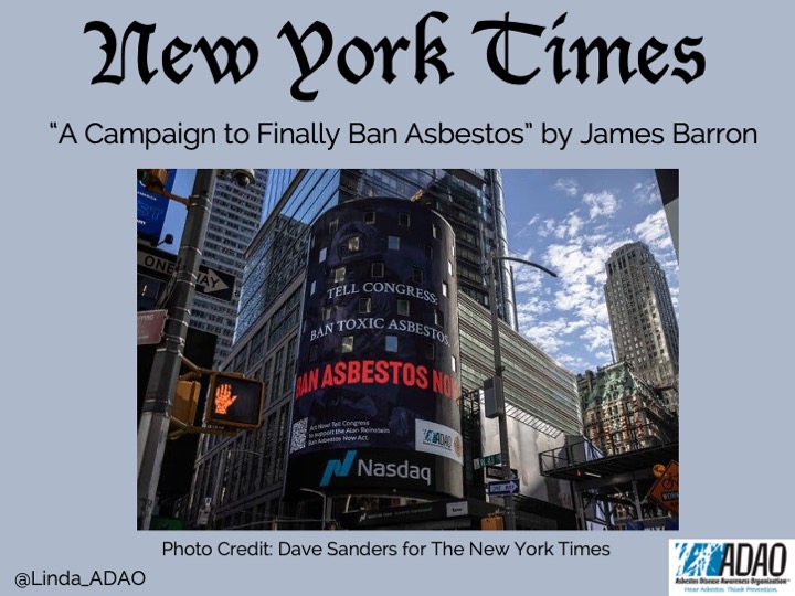 - The New York Times featured an article titled “A Campaign to Finally Ban #Asbestos” by James Barron, shedding light on the ongoing efforts to eliminate asbestos use and the legislative push behind it. Read more.