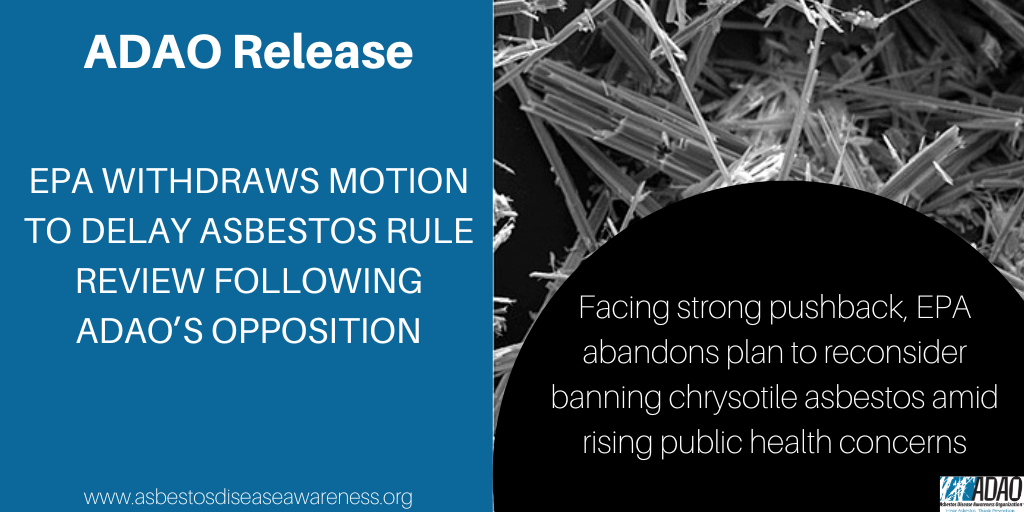 EPA WITHDRAWS MOTION TO DELAY ASBESTOS RULE REVIEW FOLLOWING ADAO’S OPPOSITION