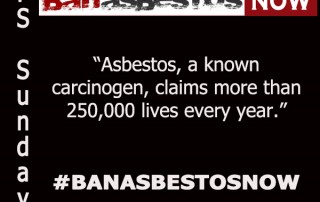 Posted on April 30, 2018 Join the Asbestos Disease Awareness Organization community around the world for #BanAsbestosNow every Sunday on Twitter, Facebook and LinkedIn. Asbestos, a known carcinogen, claims more than 250,000 lives every year. [...]