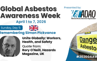 Press Release and Video English (U.S.) Posted on March 30, 2026 DAY ONE – April 1, 2026 Ignite the Movement: Legacy, Facts, and Cancer Prevention Day One of Global Awareness Asbestos Week (GAAW) opens with [...]