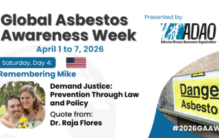 DAY FOUR – April 4, 2026 | Demand Justice: Prevention Through Law & Policy Press Release and Video Russian (Русский) Posted on March 30, 2026 On Day Four of Global Asbestos Awareness Week (GAAW), we highlight the essential connection [...]