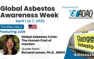 PRESS RELEASE: ADAO Commends U.S. Senate For Declaring National Asbestos Awareness Week April 1–7, 2026 Bipartisan Resolution Highlights Ongoing Public Health Risks and Urges the U.S. Surgeon General to Issue an Asbestos Warning Global Asbestos [...]