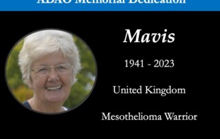 Posted on November 21, 2023 The Asbestos Disease Awareness Organization (ADAO) deeply mourns the loss of Mavis, a beloved Mesothelioma Warrior from the United Kingdom. Mavis passed away on November 21, 2023, following a courageous [...]