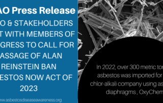 FOR IMMEDIATE RELEASE June 14, 2023 ADAO & STAKEHOLDERS MEET WITH MEMBERS OF CONGRESS TO CALL FOR PASSAGE OF ALAN REINSTEIN BAN ASBESTOS NOW ACT OF 2023 WASHINGTON, DC — Today Linda Reinstein, president and [...]