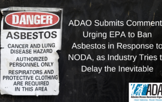 ADAO Submits Comments Urging EPA to Ban Asbestos in Response to NODA, as Industry Tries to Delay the Inevitable