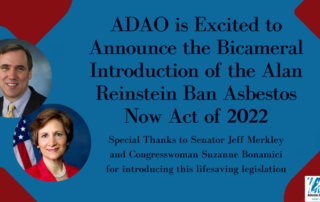 Press Release: ADAO APPLAUDS THE BICAMERAL INTRODUCTION OF THE ALAN REINSTEIN BAN ASBESTOS NOW ACT OF 2022