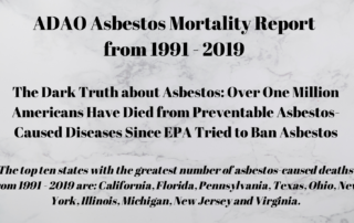 ADAO Asbestos Mortality Report from 1991 – 2019 || The Dark Truth about Asbestos: Over One Million Americans Have Died from Preventable Asbestos-Caused Diseases Since EPA Tried to Ban Asbestos