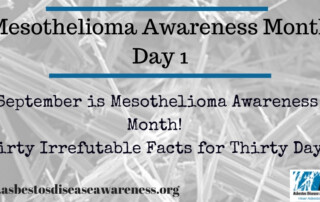 Posted on September 1, 2021 Mesothelioma Awareness Month: Thirty Irrefutable Asbestos and Mesothelioma Facts for Thirty Days For ADAO, September is Mesothelioma Awareness Month -- a month to raise awareness, remember our loved ones, and [...]