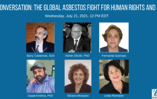 ADAO’s 11th Zoom Conversation: The Global Asbestos Fight for Human Rights and Justice with Barry Castleman, ScD; Ashok Ghosh PhD; Fernanda Giannasi, Gopal Krishna, PhD; Silvana Mossano, and Linda Reinstein on July 21