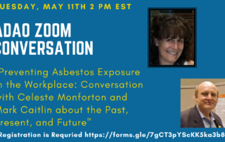 ADAO’s 10th Zoom Event: Preventing Asbestos Exposure in the Workplace: Conversation with Celeste Monforton and Mark Caitlin about the Past, Present, and Future