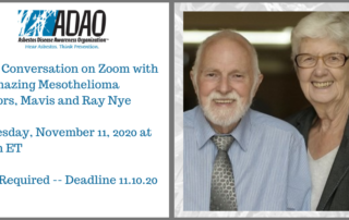 ADAO Hosts Zoom Conversation with the Amazing Mavis and Ray Nye, Mesothelioma Warriors and Asbestos Prevention Advocates on November 11th at 1 pm ET