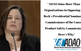 FOR IMMEDIATE RELEASE June 11, 2020 CONTACT: courtney@upshiftstrategies.com Washington, D.C. —“The Asbestos Disease Awareness Organization (ADAO) applauds the Science Advisory Committee on Chemicals (SACC) for its rigorous review of the U.S. Environmental Protection Agency (EPA) [...]