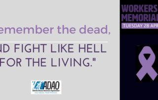 Posted on April 24, 2020 ADAO virtually stands shoulder to shoulder with individuals, trade unions, and organizations for International Workers’ Memorial Day, annually dedicated to those who have fallen victim to or been injured by [...]