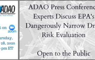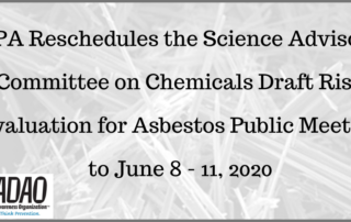 FOR IMMEDIATE RELEASE April 20, 2020 ADAO Statement re: ASBESTOS EVALUATION REVIEW POSTPONED BY EPA || Asbestos Victims’ Advocacy Group Responds WASHINGTON, D.C. — Linda Reinstein, president and co-founder of The Asbestos Disease Awareness Organization (ADAO), [...]