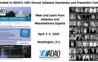 Meet and Learn from Asbestos and Mesothelioma Experts at ADAO’s 16th Annual International Asbestos Awareness and Prevention Conference on April 3-5, 2020 in Washington, D.C.