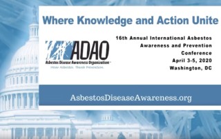 Posted on October 29, 2020 The Asbestos Disease Awareness Organization (ADAO) is pleased to present our new 16th Annual International Asbestos Awareness and Prevention Conference invitational video! Our 16th annual conference next year, April 3 [...]