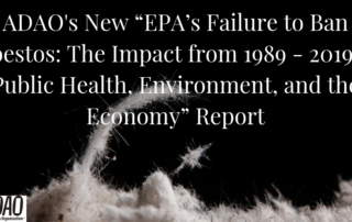 ADAO's New “EPA’s Failure to Ban Asbestos: The Impact from 1989 - 2019 on Public Health, Environment, and the Economy” Report ADAO's New Video: 30 Years After the EPA Failed to Ban Asbestos -- A [...]