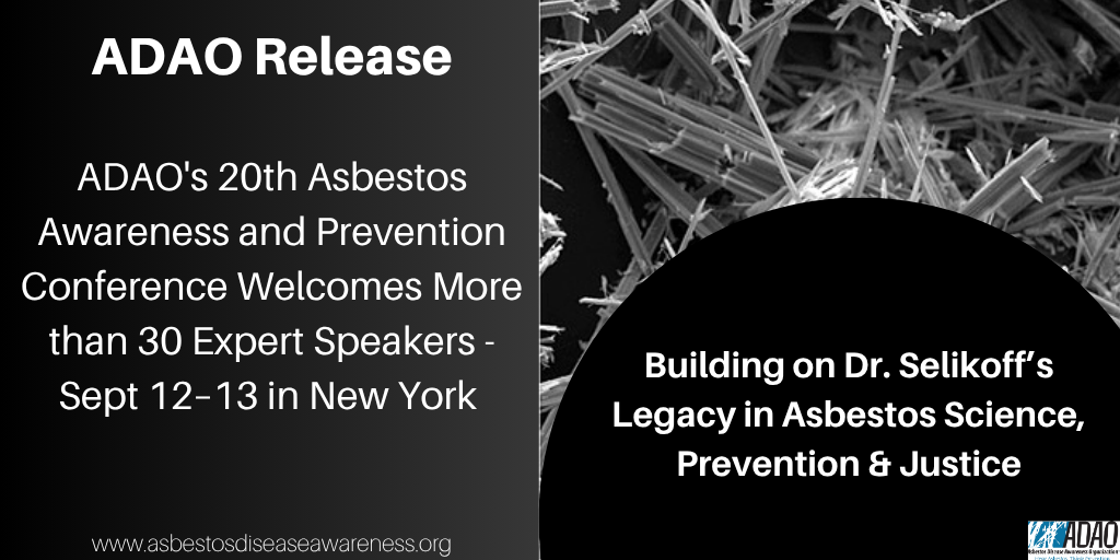 ADAO’s 20th Asbestos Awareness and Prevention Conference Welcomes More than 30 Expert Speakers – Sept 12–13 in New York