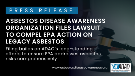 ASBESTOS DISEASE AWARENESS ORGANIZATION FILES LAWSUIT TO COMPEL EPA ACTION ON LEGACY ASBESTOS