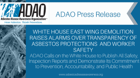WASHINGTON, D.C. — The Asbestos Disease Awareness Organization (ADAO), the largest U.S. nonprofit dedicated to preventing asbestos exposure through education, advocacy, and community initiatives, is calling for immediate transparency and strict compliance with federal safety laws following news that the entire historic East Wing of the White House will be demolished.