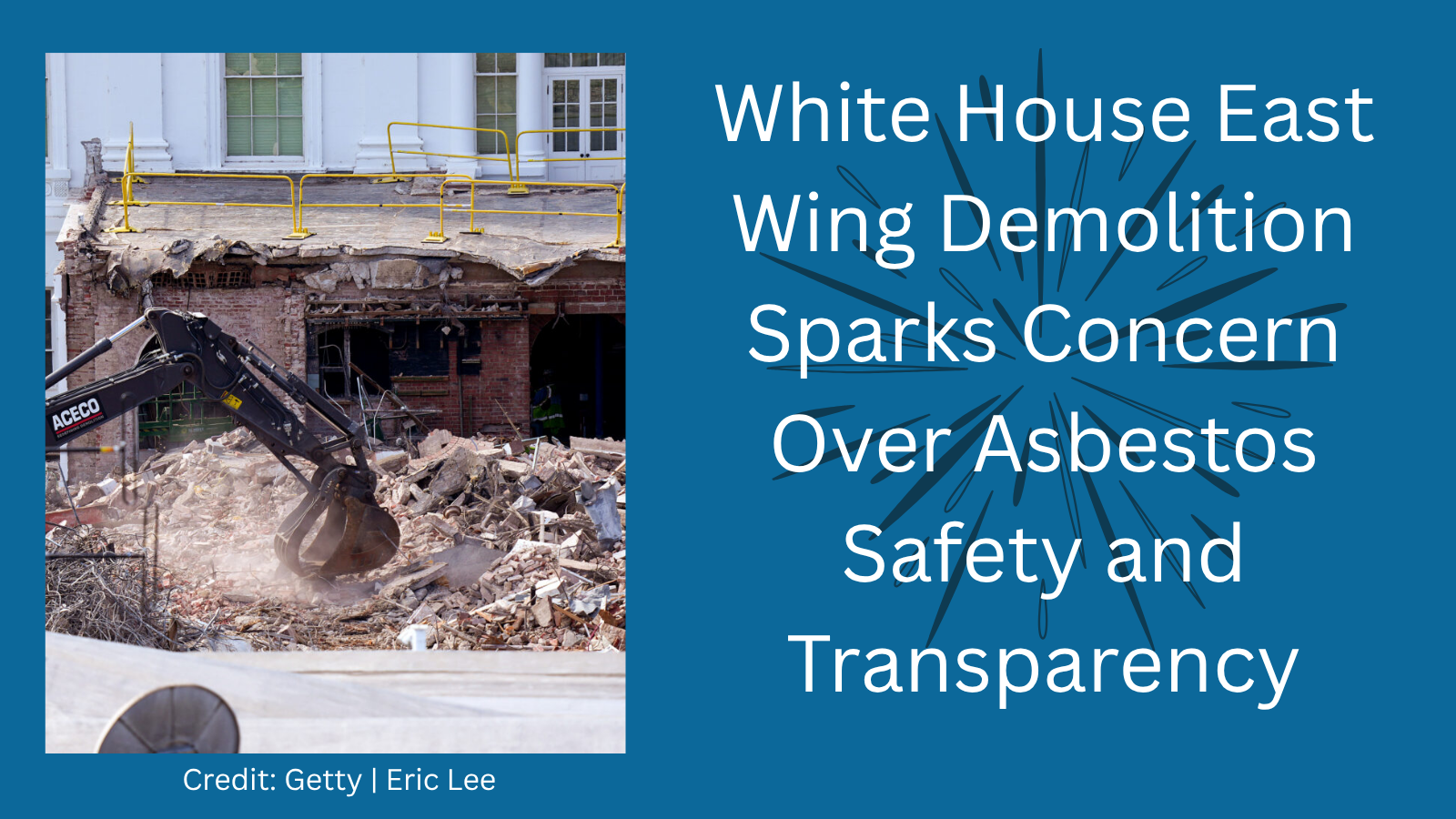 ABC News reported, “Critics question whether White House, contractors ‘cut corners’ on asbestos safety in East Wing demolition.” The report highlights concern that the public has not been informed whether asbestos and other hazardous materials were properly assessed, contained, and removed before demolition began.