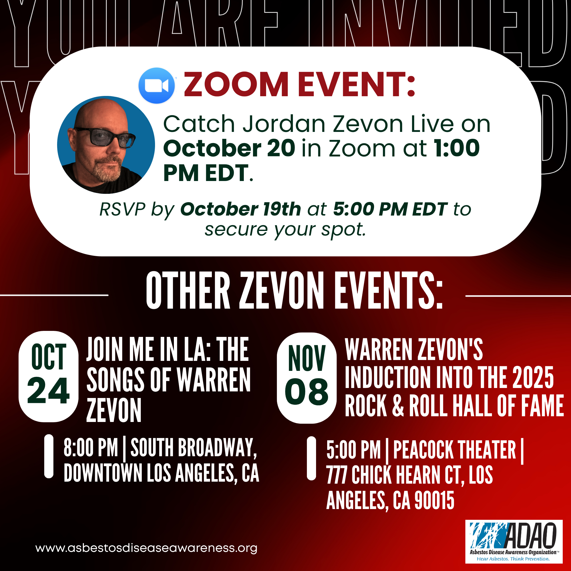Read more & RSVP by October 19 at 5:00 PM EDT: https://www.asbestosdiseaseawareness.org/newsroom/blogs/2025-zoom-jordan-zevon/