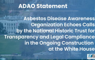 FOR IMMEDIATE RELEASE December 15, 2025 ASBESTOS DISEASE AWARENESS ORGANIZATION ECHOES CALLS BY THE NATIONAL HISTORIC TRUST FOR TRANSPARENCY AND LEGAL COMPLIANCE IN THE ONGOING CONSTRUCTION AT THE WHITE HOUSE The following statement is from [...]