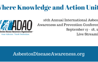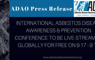 FOR IMMEDIATE RELEASE September 14, 2021 2021 INTERNATIONAL ASBESTOS DISEASE AWARENESS & PREVENTION CONFERENCE TO BE LIVE-STREAMED GLOBALLY FOR FREE Washington, DC -- The Asbestos Disease Awareness Organization (ADAO), an independent nonprofit dedicated to preventing [...]