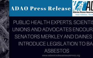 ADAO Release: PUBLIC HEALTH EXPERTS, SCIENTISTS, UNIONS AND ADVOCATES ENCOURAGE SENATORS MERKLEY AND DAINES TO INTRODUCE LEGISLATION TO BAN ASBESTOS