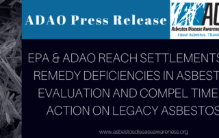 Press Release: EPA & ADAO REACH SETTLEMENTS TO REMEDY DEFICIENCIES IN ASBESTOS EVALUATION AND COMPEL TIMELY ACTION ON LEGACY ASBESTOS