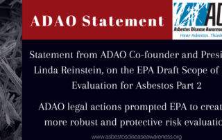 Statement from ADAO Co-founder and President, Linda Reinstein, on the EPA Draft Scope of Risk Evaluation for Asbestos Part 2 || ADAO legal actions prompted EPA to create a more robust and protective risk evaluation