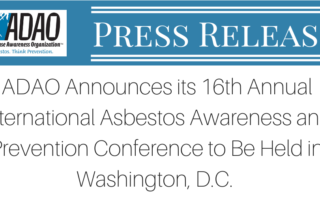FOR IMMEDIATE RELEASE January 31, 2020 ASBESTOS DISEASE AWARENESS ORGANIZATION ANNOUNCES 16TH ANNUAL INTERNATIONAL ASBESTOS AWARENESS AND PREVENTION CONFERENCE The annual three-day conference “Where Knowledge and Action Unite” in Washington, D.C. April 3-5, 2020 will [...]