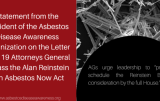 Statement from the President of the Asbestos Disease Awareness Organization on the Letter from 19 Attorneys General to Pass the Alan Reinstein Ban Asbestos Now Act